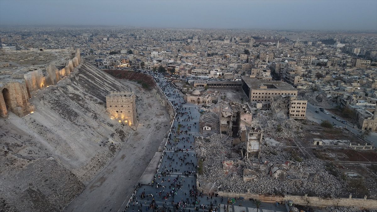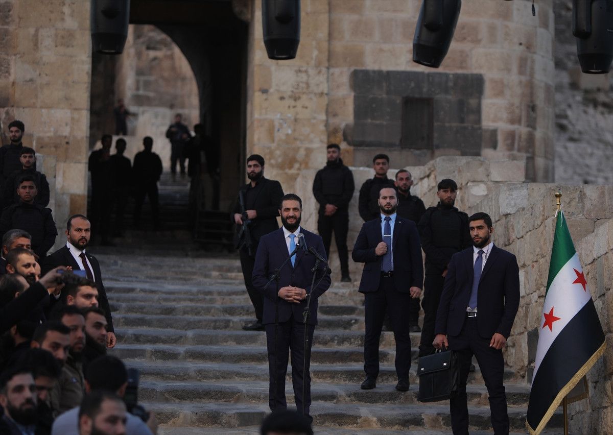 Şara, kentin stratejik önemine dikkat çekerek, “Halep Kalesi bu sürecin en güçlü sembolüdür. Halep’le birlikte tüm Suriye yeniden doğdu. Halep, tüm Suriye’ye açılan kapımızdı. Halep’in zinciri kırılınca hapishaneler özgürleşti, Suriye’nin çocuklarının yüzü yeniden güldü” diye konuştu.