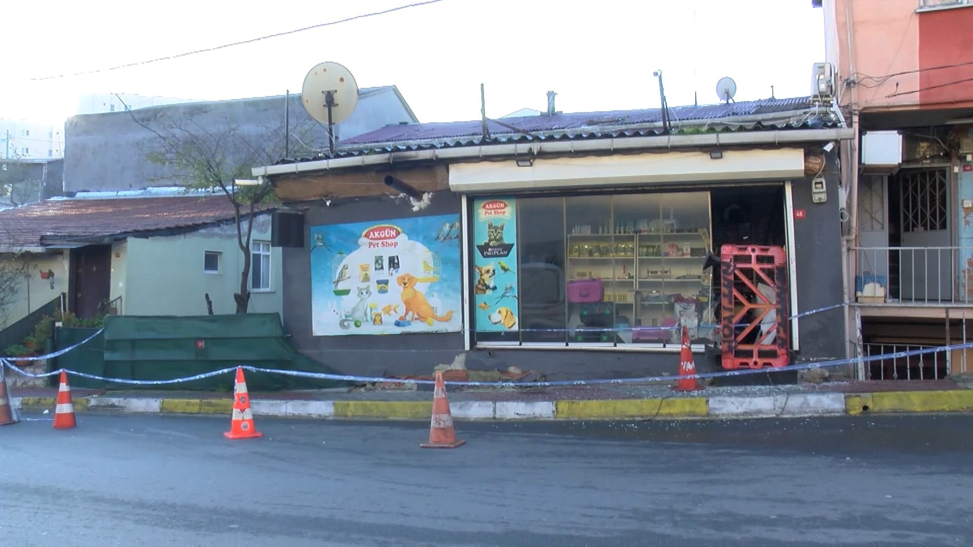 Vatandaşların ihbarı üzerine, olay yerine polis ve itfaiye ekipleri sevk edilirken polis ekipleri, çevrede güvenlik önlemleri aldı. Kayma nedeniyle pet shopun camlarının kırıldığı fark edilirken ekipler, tarafından binada inceleme yapılarak, yapıdan alınan numuneler laboratuvara gönderildi. Olay sırasında her iki yapının da boş olduğu öğrenildi. Zemininde kayma oluşan dükkan ise kapatıldı.