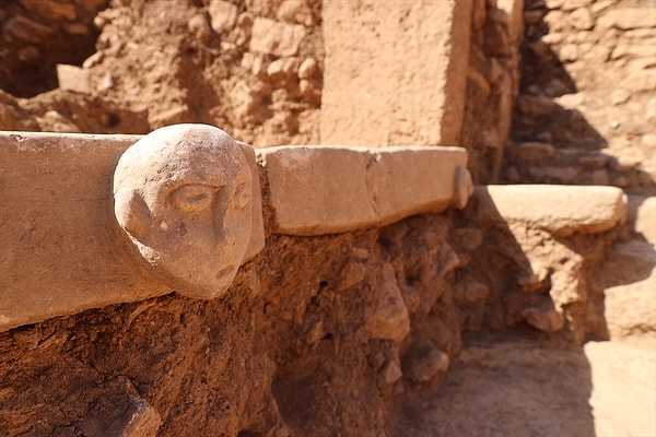 Bu yılki kazılarda dört bloktan oluşan kireç taşının ön yüzeyinde yüksek ve alçak kabartma teknikleriyle işlenmiş, yüz hatları son derece belirgin iki insan yüzü kabartması bulduklarını hatırlatan Güldoğan, eserlerin yaklaşık 10 bin 500 yıl öncesine tarihlendiğini ifade etti.